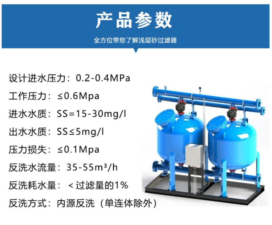當(dāng)系統(tǒng)處于過濾狀態(tài)時(shí),加壓水從濾罐進(jìn)口流入布水系統(tǒng),均勻的到達(dá)濾料層。當(dāng)水流過濾料層時(shí),懸浮物被濾料截留。過濾器底 部有帶精密縫隙的集水器,過濾后的水被均勻收集,并流出過濾器。集水器上的精密縫隙能防止濾料的流失。機(jī)械聯(lián)動(dòng)堞閥(氣動(dòng)或 電動(dòng))控制著水流的方向。 當(dāng)系統(tǒng)處于自動(dòng)反沖洗狀態(tài)時(shí),反洗周期由不斷增加的壓力差控制。隨著雜質(zhì)在濾料層中不斷聚積,壓力損失不斷增加,當(dāng)壓差增加 到某一設(shè)定值時(shí),系統(tǒng)將自動(dòng)轉(zhuǎn)換至反洗狀態(tài)。加壓水通過流化裝置(即集水裝置)進(jìn)入濾料層,對(duì)其進(jìn)行沖刷,使截留的污染物脫落 并排出過濾系統(tǒng)。反洗持續(xù)至少2分鐘后,閥門自動(dòng)將系統(tǒng)轉(zhuǎn)至過濾狀態(tài)。